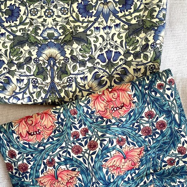 細かな草花柄のリバティープリントとブルーのデニムを組み合わせて作りました。