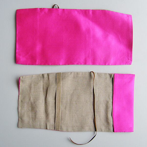 裏地は日本製の麻を使っています。しおりはスエード風テープです。